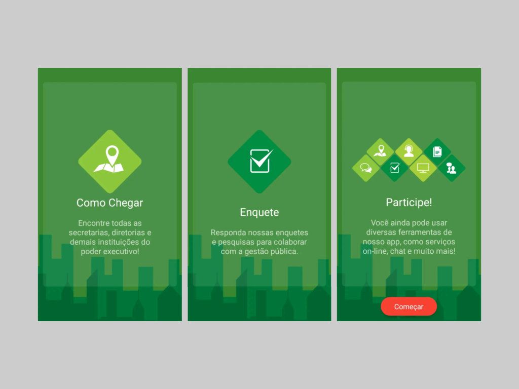 - Envio de ocorrências e denúncias de irregularidades com foto e localização, respondidas diretamente pelo aplicativo;